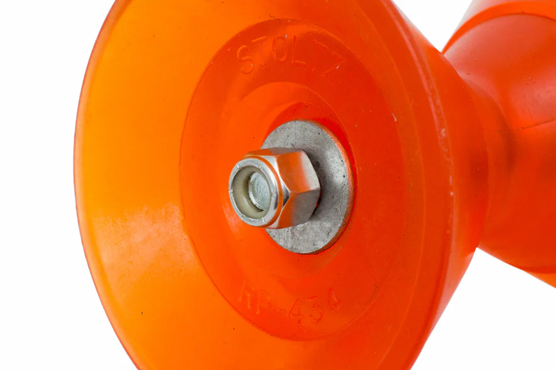 This Product is an assembly put together of Stoltz products and Stainless Steel Hardware. This is a 3 inch Stoltz Bow Roller with Stoltz Bells. You can use this product to replace an existing cracked and faded bow roller set-up, or to beef up your current one with the best option on the market. This assembly includes the 3 inch Stoltz bow Roller, the (2) Stoltz Brand Bells, and a Stainless Steel 1/2 inch diameter bolt to mount the assembly. This 3 inch Stoltz Roller Roller with Bell assembly would mount on the front of your trailer in the winch post or winch stand. This is meant to be the contact point for the bow of your boat as you load and unload. In many cases, having the addition of the bells significantly helps guide and direct the bow of the boat the last final inches, ensuring correct placement. In addition, having the bells protects the boats bow front making contact with the winch post arms, which can damage the hull of the boat. Stoltz Brand Products, especially with this set up, wont crack and mark up your boat hull!